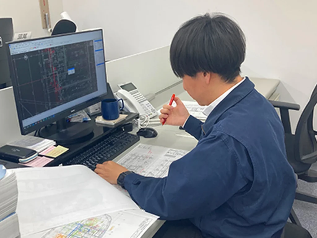 大学の建築学科を卒業したものの、建築生産設計図の知識が全く無いまま入社した為、中々仕事に馴染む事が出来ず苦労した記憶があります。今でこそ業務に余裕も生まれてきましたが、そこに至るまで、振り返れば沢山の人達に助けられてきました。働く事は何より自分の為ですが、諸先輩方に導いて貰った恩を、今後皆さんに還元しながら業務に携わっていきたいと思います。